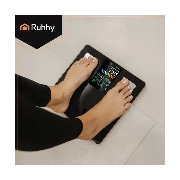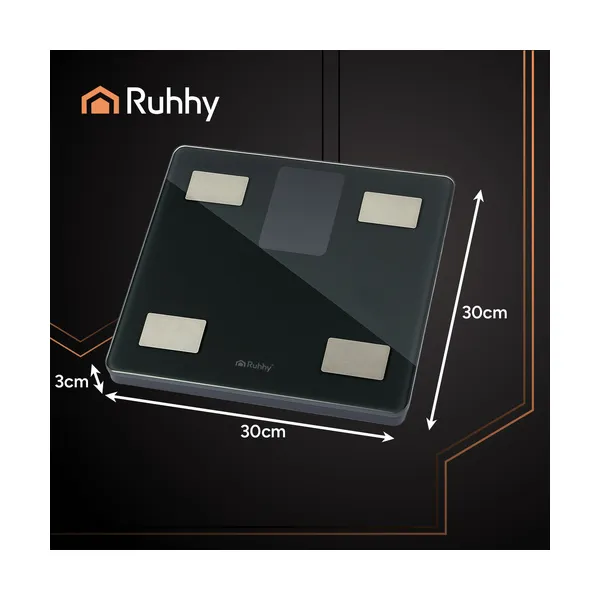 Ruhhy fekete okos fürdőszobai mérleg, testanalízis, 226 kg, LCD