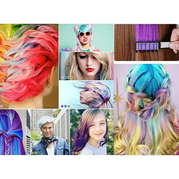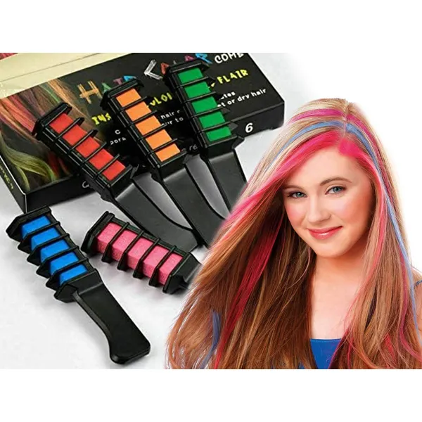 Változtasd meg a frizurád színét egy mozdulattal a kimosható hajszínező krétafésűk segítségével! A 10 különböző árnyalatot tartalmazó készlet ideális bulikhoz, fesztiválokra vagy akár hétköznapi hangulatfrissítéshez, mindezt festőecsetek és vegyszerek nélkül.