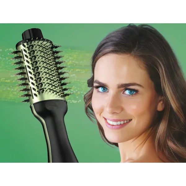 A 2000 W-os, 4 az 1-ben hajformázó kefe egyszerre szárít, dúsít, egyenesít és göndörít, így percek alatt elkészül a tartós frizura. Ovális feje a töveket emeli, masszírozó sörtéi pedig kíméletesen óvják a hajszálakat és a fejbőrt.
