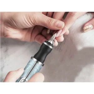 Az eszköz nagyon csendes működésű, és ergonomikus formájának köszönhetően kézhez illeszkedik. A körömcsiszoló 5 cserélhető fejjel rendelkezik. Gyors és egyszerű fejcsere rendszerrel van ellátva.
