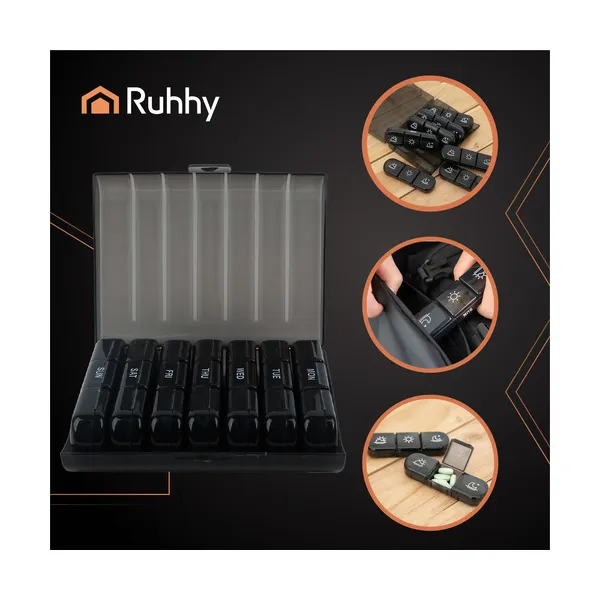 Miért küzdene a szétszórt tablettákkal, ha egyetlen rendezett dobozban tarthatja őket? A 7 napos, háromrekeszes gyógyszeradagoló fekete tokban segít, hogy minden gyógyszer vagy étrend-kiegészítő a megfelelő időben kerüljön elő.