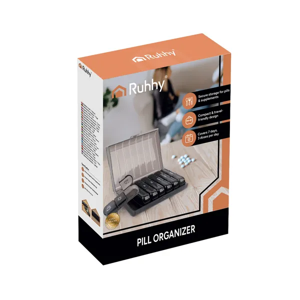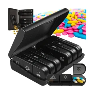 A jól látható feliratok és a gyorsan nyitható fedél megkönnyítik a napi rutint, megszüntetve a kimaradt vagy duplán bevett adagok miatti aggodalmat. A letisztult fekete tok diszkréten mutat az éjjeliszekrényen és a munkahelyi íróasztalon is, miközben védi a tartalmat a fénytől és a nedvességtől.
