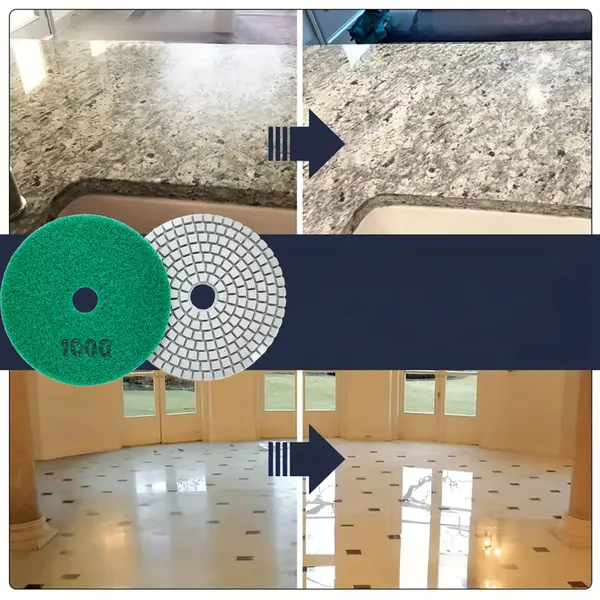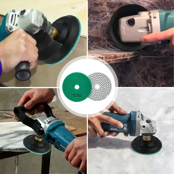 Az 80 mm átmérőjű, K1000 finomságú gyémánt polírozó korongokat tartalmazó 10 darabos készlet ideális gres, kerámialap, márvány, gránit és más kemény kőanyag precíz csiszolásához.
