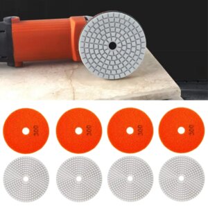 A 10 darabos, 80 mm átmérőjű gyémánt csiszolótárcsa-készlet 300-as szemcsemérettel professzionális megoldás gres, kerámialap, kő, márvány és gránit pontos száraz vagy nedves megmunkálásához. A tépőzáras rögzítésnek köszönhetően pillanatok alatt tárcsát cserélhet.
