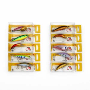 Ez a 10 darabos pergető wobbler szett ragadozó halak célzott horgászatához készült, és többféle víztípuson is jól használható. A csalik vezetés közben jellemzően a víz felső rétegeiben dolgoznak, így különösen eredményesek felszínközeli és sekélyebb részeken. A testforma és a terelőlap (ster) realisztikus mozgást ad, a 3D szemek pedig erősítik a vizuális csalianyagot.
