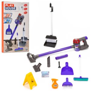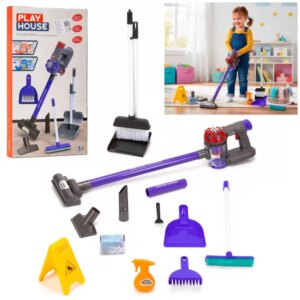 10 részes gyerek takarítókészlet játék porszívóval, mop és seprű