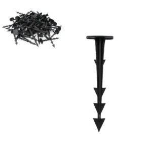 Használatával csökken a gyomok felbukkanása, a takarófólia nem mozdul el, így növényei optimális körülmények között fejlődhetnek. A csomag tartalma 100 db 12,5 cm-es műanyag rögzítő tüske.