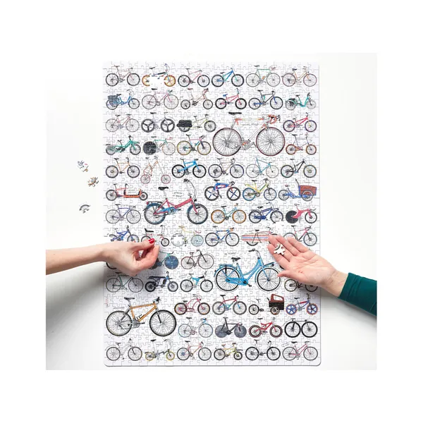 Ha szereted a kétkerekűek világát, ez az 1000 darabos, 48 × 68 cm-es kirakó több tucat stílusos városi, országúti és mountain bike ábrájával repít el a bringázás szabadságába. A részletgazdag poszterhatású illusztráció komoly, de élvezetes kihívást kínál – garantáltan órákra kikapcsol a mindennapokból.