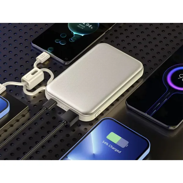 Gyors és kényelmes töltés bárhol: a 10000 mAh kapacitású külső akkumulátor QC 3.0 támogatással és 22,5 W teljesítménnyel segít, hogy ne merülj le napközben. A beépített USB‑C és Lightning kábelnek köszönhetően kevesebb kiegészítőt kell magaddal vinned, mégis több eszközt csatlakoztathatsz.