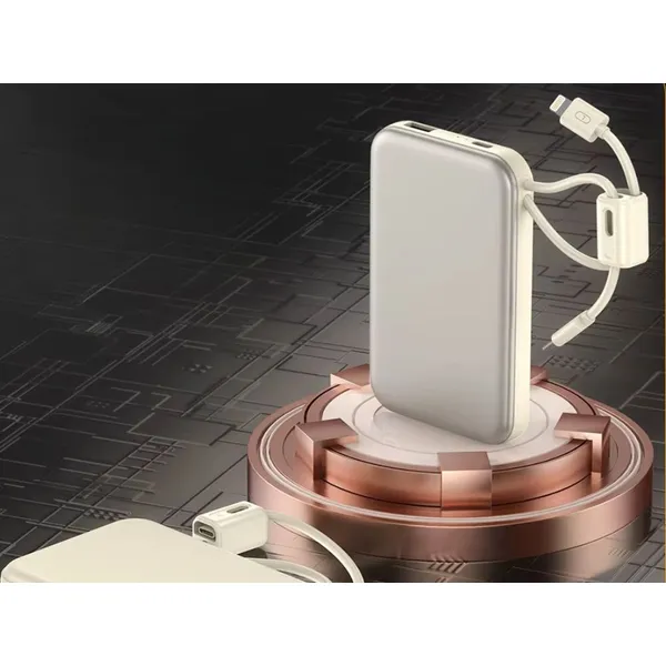 10000 mAh powerbank 22,5 W QC 3.0, beépített USB-C és Lightning kábellel
