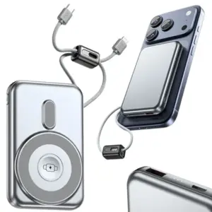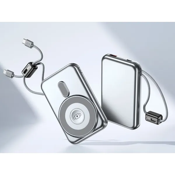 Modern, nagy kapacitású powerbank, amellyel kényelmesen tölthetsz több eszközt akár egyszerre is. Támogatja a vezeték nélküli töltést telefonokhoz és kompatibilis okosórákhoz, emellett beépített Lightning és USB-C kábelekkel is rendelkezik, így nem kell külön kábeleket magaddal vinned.