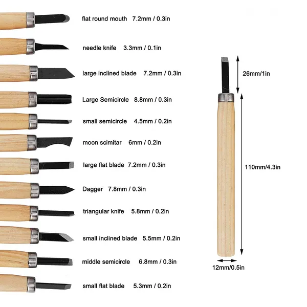 Fedezze fel a kreatív fafaragás örömét ezzel a 12 darabos vésőkészlettel, amely karbonacél pengéivel és ergonomikus fa nyeleivel pontos, tiszta vágást biztosít kezdőknek és haladóknak egyaránt.