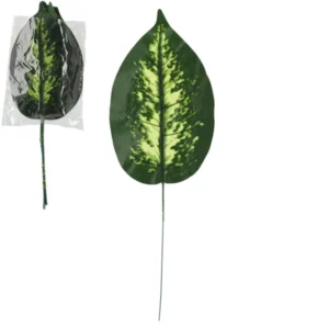 Ragyogóan élethű diffenbachia levelekből álló, 12 darabos műág-szett, amely pillanatok alatt trópusi hangulatot varázsol otthonodba, irodádba vagy rendezvényedre. A 47,5×27×17 cm-es méretnek és a hajlítható szárnak köszönhetően könnyedén illesztheted vázába, kaspóba vagy virágfalba.