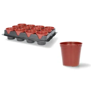 A kompakt, 12 darabos palántanevelő cserép készlet ideális magvetéshez, dugványozáshoz, valamint cserjék és fiatal fák előneveléséhez. A strapabíró, újrahasznosítható műanyagból készült cserepekhez illeszkedő tálca megkönnyíti az öntözést és a növények mozgatását.