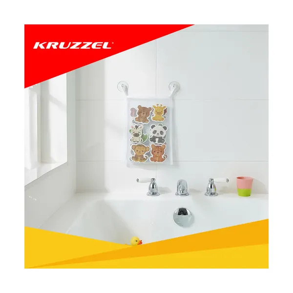 • Rendezett tárolás – a hálós organizer tapadókorongokkal rögzíthető, szellőzik, így a játékok gyorsabban száradnak.