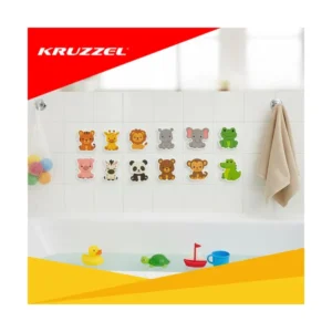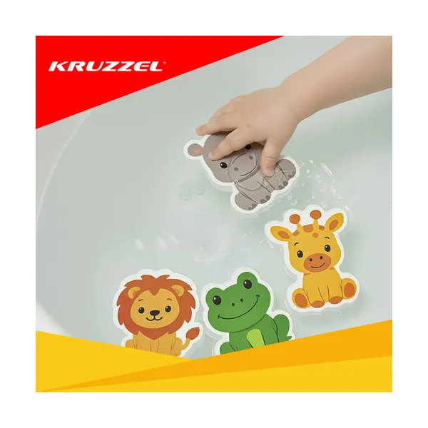 A színes habszivacs állatok vizesen rátapadnak a kádra és a csempére, így a fürdés játék és tanulás egyszerre. A tapadókorongos hálós tárolóban a figurák gyorsan száradnak, kevésbé penészednek, és a fürdőszoba is rendezett marad.