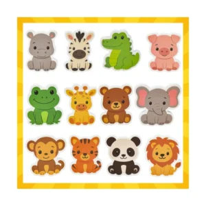 Ez a 12 darabos, színes habszivacs állat szett egyszerre teszi vidámmá és fejlesztővé a fürdést. A figurák vizesen könnyen rátapadnak a kád falára és a csempére, így a gyermek játék közben is tanulhat. A készlethez tapadókorongos hálós tároló is jár, amelyben a játékok gyorsan száradnak, és a fürdőszoba rendezett marad.