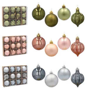 • Vegyes felületű díszek: matt, fényes és csillámos változatok