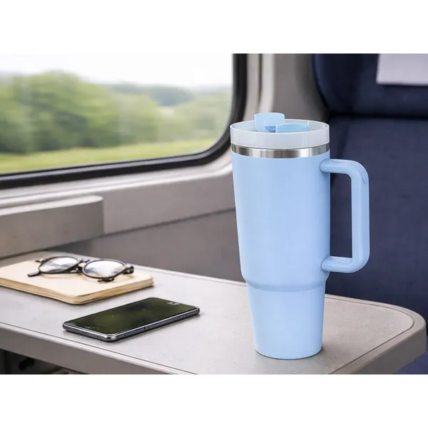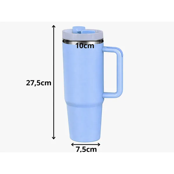 Nagy, 1,2 literes duplafalú termoszbögre, amely hosszabban tartja melegen vagy hidegen az italokat, így kevesebbszer kell újratöltened. A jól záródó fedél, a szívószálas ivás és a kényelmes fogantyú praktikus választás autóba, irodába és kiránduláshoz.
