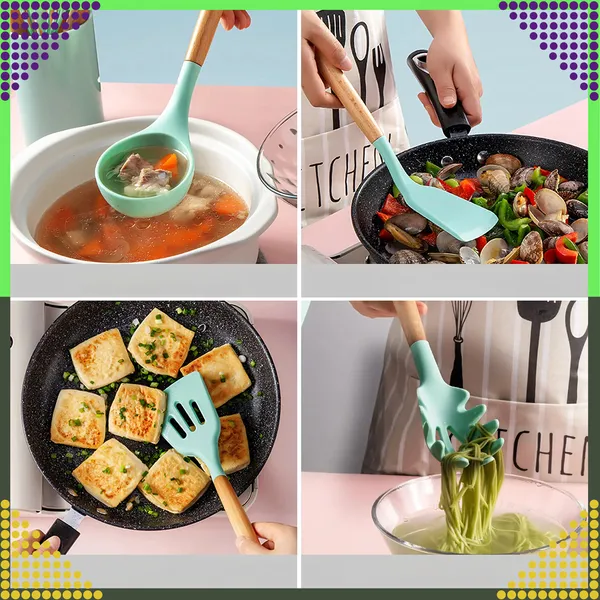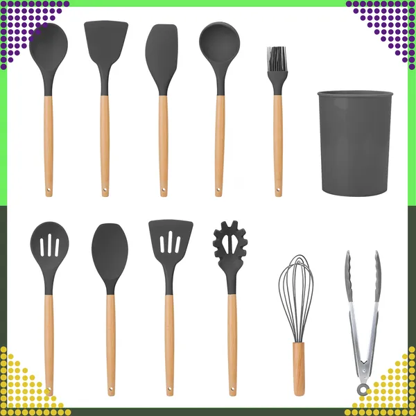 Dobja fel konyháját ezzel a 12 részes szilikon konyhai eszközkészlettel, amely ideális a mindennapi főzéshez és sütéshez. A szilikon fejek kíméletesek a tapadásmentes felületekhez, miközben kényelmes és megbízható használatot biztosítanak.