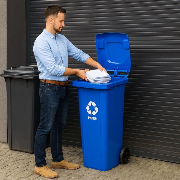 Tartós, 120 literes kapacitású, kifejezetten papír szelektív gyűjtésére tervezett kék kuka, amely ideális családi házakhoz, irodákhoz és szolgáltató egységekhez. A magas minőségű HDPE műanyag ellenáll az UV-sugárzásnak, vegyszereknek és mechanikai behatásoknak, így hosszú élettartamot és színtartósságot biztosít.