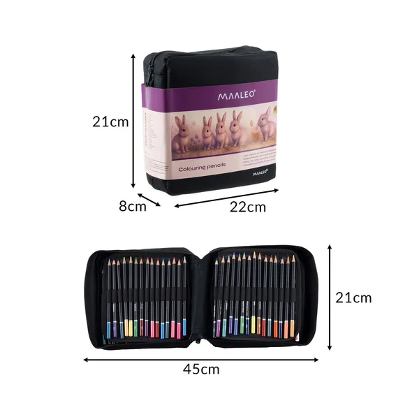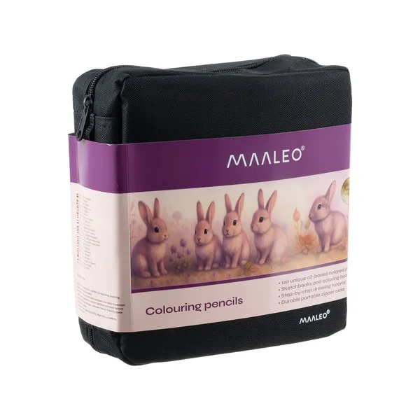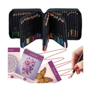 Ez a 120 színű színesceruza-készlet komplett rajzkészlet kezdőknek és haladóknak: a puha bélű ceruzákhoz vázlatfüzet, színező és egy lépésről lépésre haladó rajztanuló füzet is jár, mindez rendezett, cipzáras hordtáskában. Ideális otthoni alkotáshoz, iskolába, kreatív foglalkozásokra vagy utazáshoz.