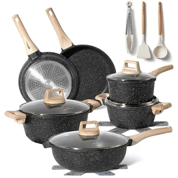 Ez a teljes edénykészlet ideális választás új háztartásba, ajándéknak vagy azoknak, akik egyetlen készlettel szeretnék lefedni a mindennapi főzés legtöbb feladatát. Elegáns fekete gránit megjelenése a modern konyhák stílusos kiegészítőjévé teszi.