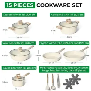 A 15 részes gránit bevonatú edénykészlet praktikus választás a mindennapi főzéshez és a változatos családi ételek elkészítéséhez. A bézs szín elegáns megjelenést ad a konyhának, míg a gránit bevonat hozzájárul a kényelmesebb használathoz és a könnyebb tisztításhoz.