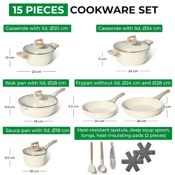 • 15 részes készlet a sokoldalú konyhai használathoz