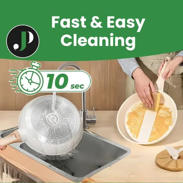 A gránit hatású bevonat segíti, hogy az ételek kevésbé tapadjanak le, ami megkönnyíti a főzést és a tisztítást. A párolóbetét különösen hasznos zöldségek, halak vagy egyéb kímélő elkészítést igénylő fogások készítéséhez.