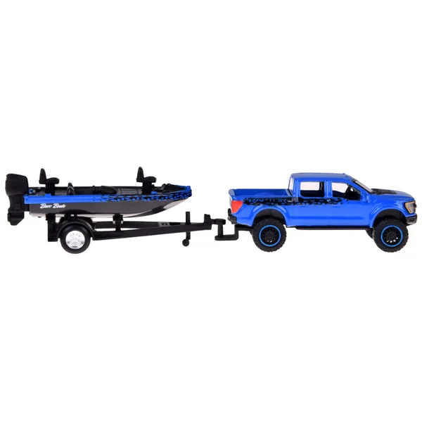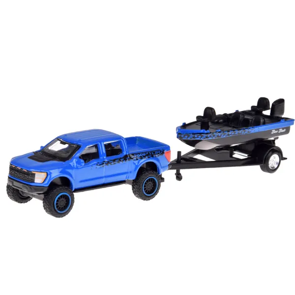 1:64 méretarányú Ford F-150 SVT Raptor 2021 fém modell csónak utánfutóval
