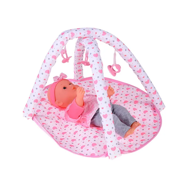 Ez a deluxe babagondozó szett mindent tartalmaz, amire a kisgyermeknek szüksége lehet, hogy átélje a gondoskodás örömét: 31 cm-es, mozgatható végtagú babát, összecsukható sport babakocsit, utazóágyat, játszószőnyeget és még sok más praktikus kelléket.