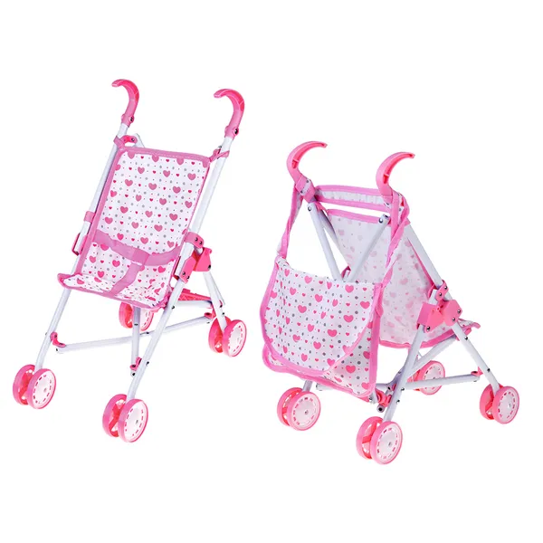 A szív mintás sport babakocsi strapabíró kerekei könnyedén gurulnak, a váz egy mozdulattal összecsukható, így kis helyen elfér.