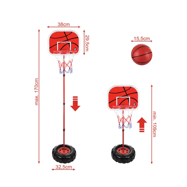 Ez a 170 cm-es kosárlabda palánk és gyűrű szett ideális választás otthoni játékhoz, gyakorláshoz és a dobások fejlesztéséhez. Kompakt méretének köszönhetően kisebb udvaron vagy garázsban is jól használható, így könnyen beilleszthető a mindennapokba.