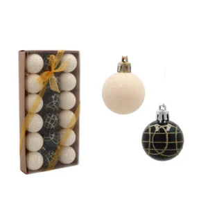 Az 4 cm-es gömbdíszek 18 darabos csomagban érkeznek, egységes, mégis változatos ragyogást adva a karácsonyfádnak. Könnyű, törésálló anyaguknak köszönhetően biztonságos megoldás gyermekes vagy háziállatos otthonokban is.