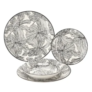 Az ízléses, szürke levélmintás porcelán étkészlet egyszerre teszi elegánssá és praktikusabbá az asztalát; mosogatógép- és mikróbiztos, így időt spórol Önnek. A 18 részes összeállítás minden fogáshoz tartalmaz megfelelő tányért, hogy vendégei teljes élményben részesüljenek.