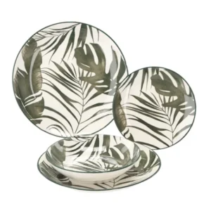 Álmodott egy olyan étkészletről, amely mindennapi terítékeit is feldobja, de az ünnepi asztalon is megállja a helyét? A 18 részes, kerek, zöld leveles motívummal díszített porcelán szett elegáns formavilágával harmóniát és frissességet visz a konyhájába.