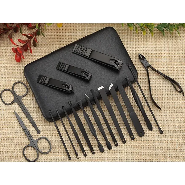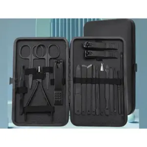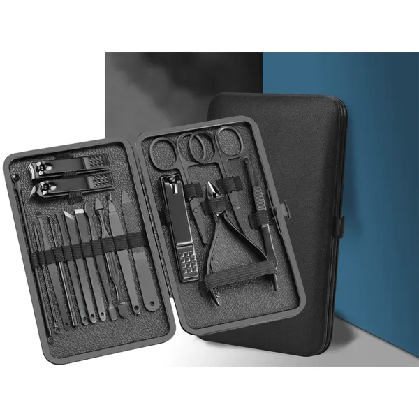 Rendezett, 18 darabos manikűr-pedikűr készlet merev, pattintós fekete tokban, hogy otthon és utazáskor is gyorsan rendbe tudd tenni a körmeidet. A többféle vágó- és ápolóeszköz segít a pontos igazításban és a körömágy környékének ápolásában.