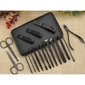 18 részes manikűr-pedikűr készlet fekete tokban, körömvágókkal