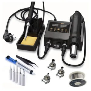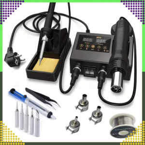 Professzionális 2 az 1-ben forrasztóállomás, amely egyesíti a 660 W teljesítményű forrólevegős (Hot Air) fúvót és a gyorsan felfűtő, cserélhető hegyű pákaegységet. Ideális finommechanikai javításokhoz, SMD alkatrészek be- és kiforrasztásához, prototípusgyártáshoz vagy hobbi projektekhez.