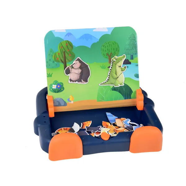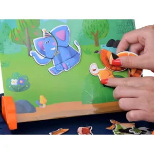 Mágneses kirakó és rajztábla egyben: a gyermek állatos elemekből rakhat ki mintákat, majd filccel tovább rajzolhat. A hordozható tok miatt útközben is kényelmes, miközben finommotorikát, kreativitást és szem-kéz koordinációt fejleszt.