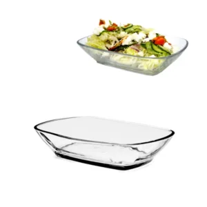 Két strapabíró üvegtál salátához, desszerthez és snackekhez, melyek 230 ml-es űrtartalommal és egymásba rakható kialakítással helyet takarítanak meg. Mosogatógép- és mikrohullámú sütő kompatibilitásuknak köszönhetően a mindennapokban is praktikusak.