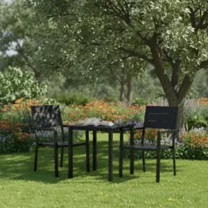 2 db kerti szék szett teraszra/balkonra, acél váz, HDPE ülés, fekete