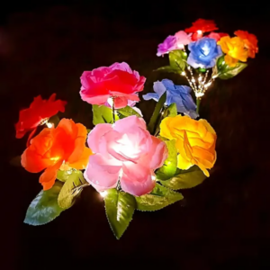 Két darab, rózsa formájú napelemes leszúrható kerti LED lámpa, amely dekoratív fényt ad a virágágyásban vagy a kerti ösvény mellett. Készletben érkezik, így azonnal páros elrendezést hozhat létre, és egyszerre díszítheti a bejáratot vagy a teraszt.