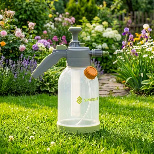 2 l-es nyomásos kerti permetező, 2 szórófejjel, vegyszeradagolóval