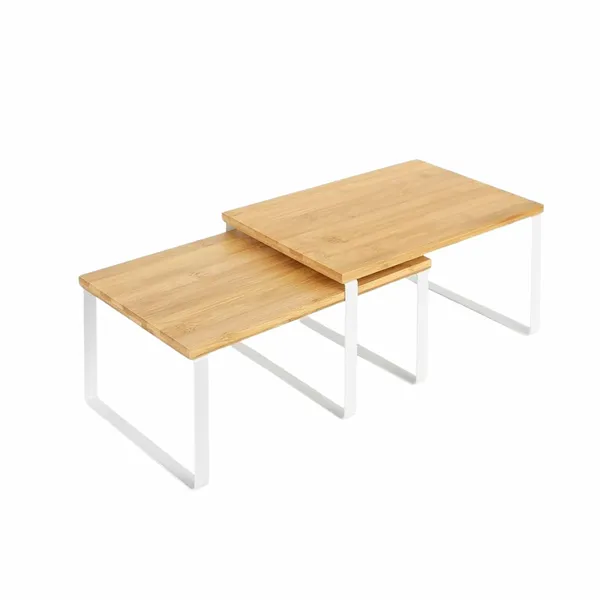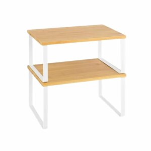 2 szintes konyhai rendezőpolc szett, bambusz és fehér fém
