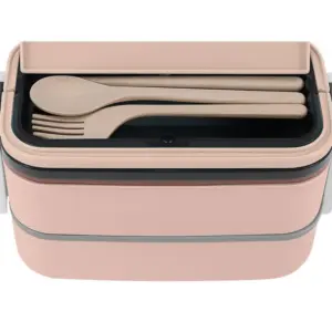 2 szintes, rekeszes ebéddoboz 1400 ml, evőeszközzel – XXL