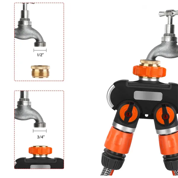 2-utas kerti csapelosztó tömlőhöz, zárható szelepekkel