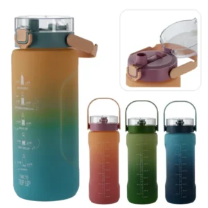 A 2 literes ombre kék kulacs könnyű, ütésálló PC műanyagból készült, szivárgásmentes csavaros kupakkal. Ideális edzéshez, túrázáshoz és irodai használathoz, BPA-mentes kialakítása pedig biztonságos, higiénikus hidratálást kínál.