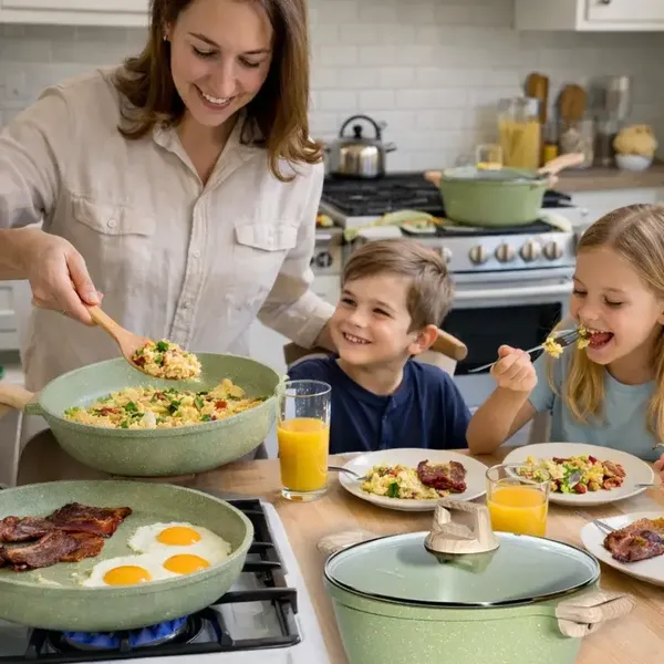 Praktikus, 21 részes edénykészlet gránit bevonattal, amely kényelmesebbé teszi a mindennapi főzést és egységes megjelenést ad a konyhának. A modern zöld kivitel stílusos választás, ha sokoldalú és esztétikus szettet keres otthonra.